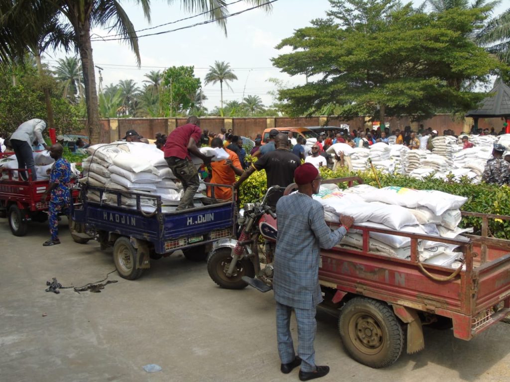 ‎Earlier in the day, and in line with the directive of Governor Umo Eno to celebrate the festive season with the people, the Executive Chairman of Abak Local Government Area, Hon. (Mrs.) Ime Effiong Charles, facilitated the distribution of 40 bags of rice to each of the 91 villages across Abak. The exercise was witnessed by all village heads and their respective youth leaders, ensuring transparency and inclusiveness in the distribution process.