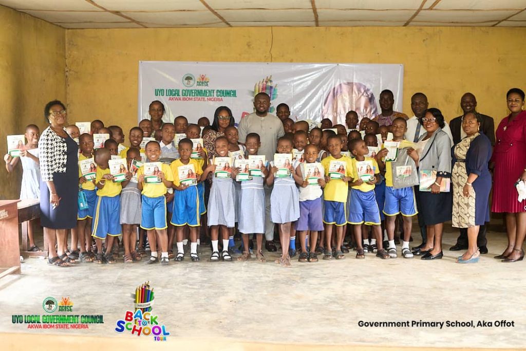 The back to school tour which will run till October 14, 2025, was attended by the staff of the Education Directorate, Uyo LGC, the Women Development Officer, Mrs. Enobong Akang, teachers and excited pupils, who cheered as they received their educational materials.