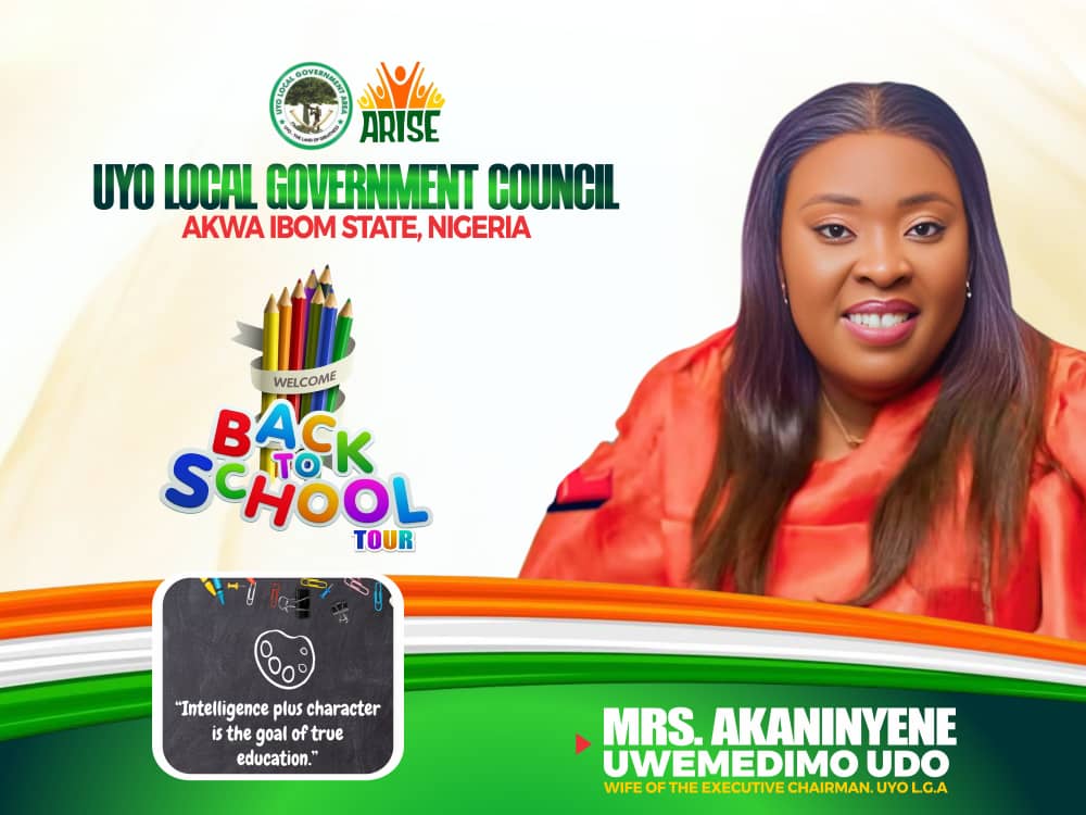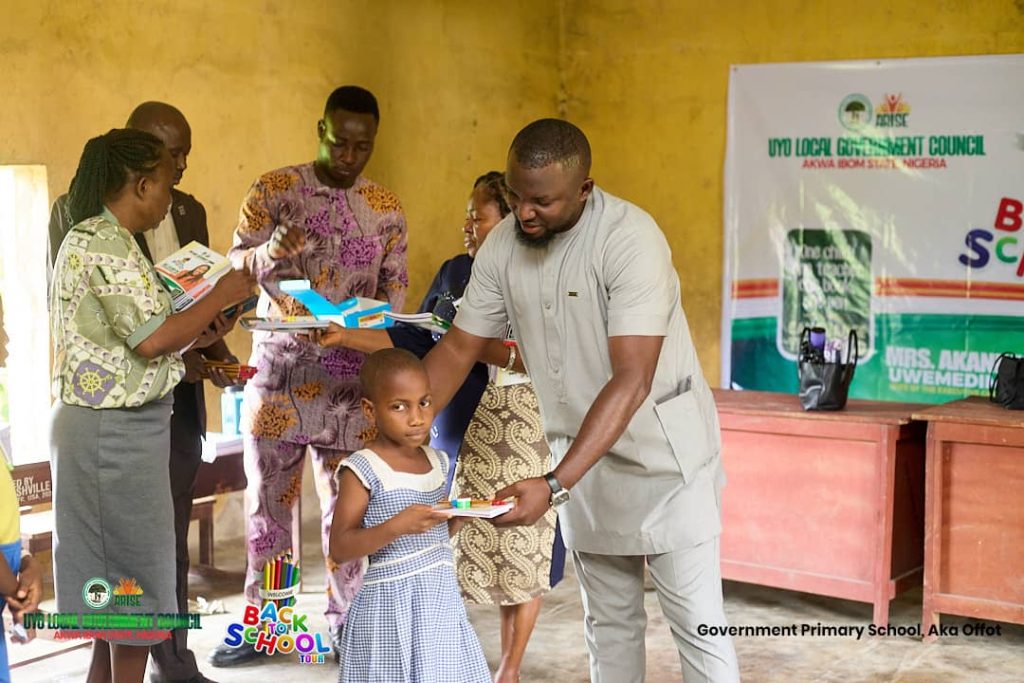 As pupils and students in Akwa Ibom State resume for the 2025/2026 academic session, the wife of the Chairman, Uyo Local Government Area, Mrs. Akaninyene Uwemedimo has started the distribution of essential educational materials to pupils in 24 public primary schools across the four clans of Uyo.