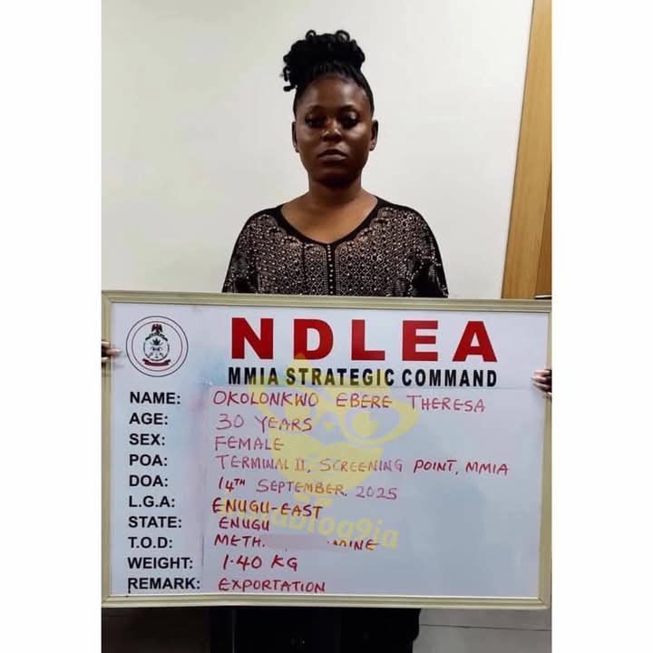 A businesswoman, Okolonkwo Ebere Theresa, was arrested on Sunday, September 14, at the Murtala Muhammed International Airport, Lagos, after she was caught attempting to smuggle dr¥gs concealed in her underwear.