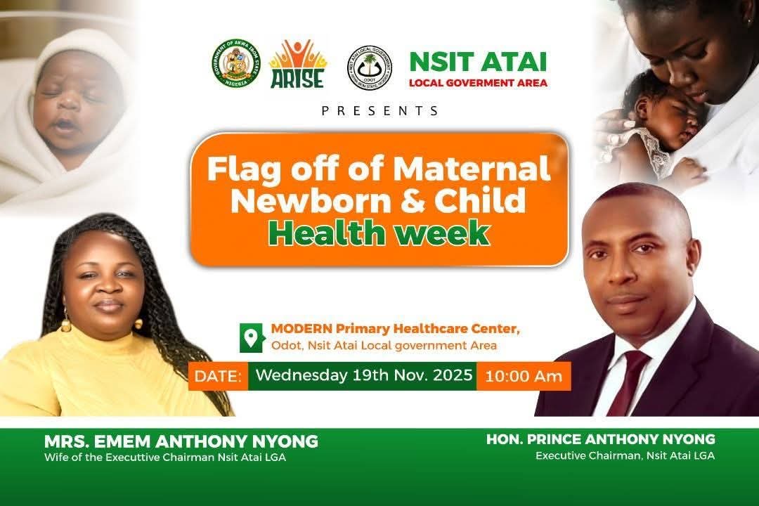 The Wife of the Executive Chairman of Nsit Atai Local Government Area, Mrs. Emem Anthony Nyong, has officially flagged off the 2025 Second Round Maternal, Newborn and Child Health (MNCH) Week at the Model Primary Health Centre, Odot, on Wednesday, 19th November 2025.