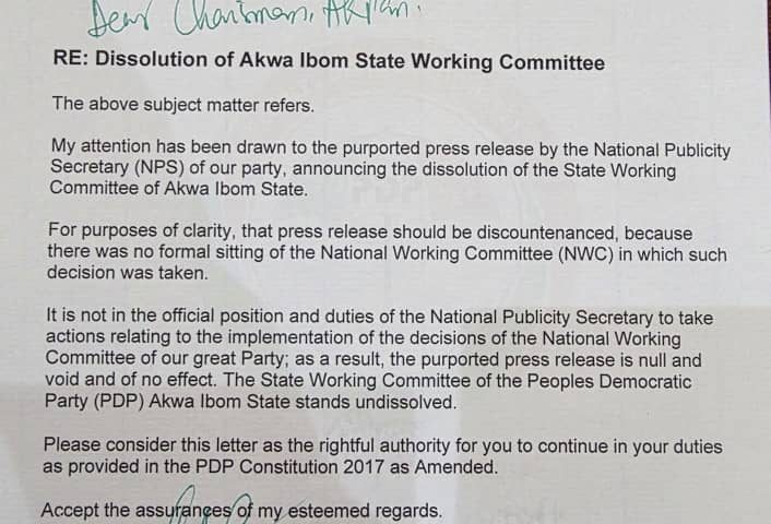 PDP Dissolves Akwa Ibom State Exco, Constitutes Caretaker Committee