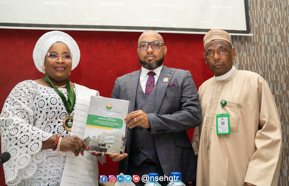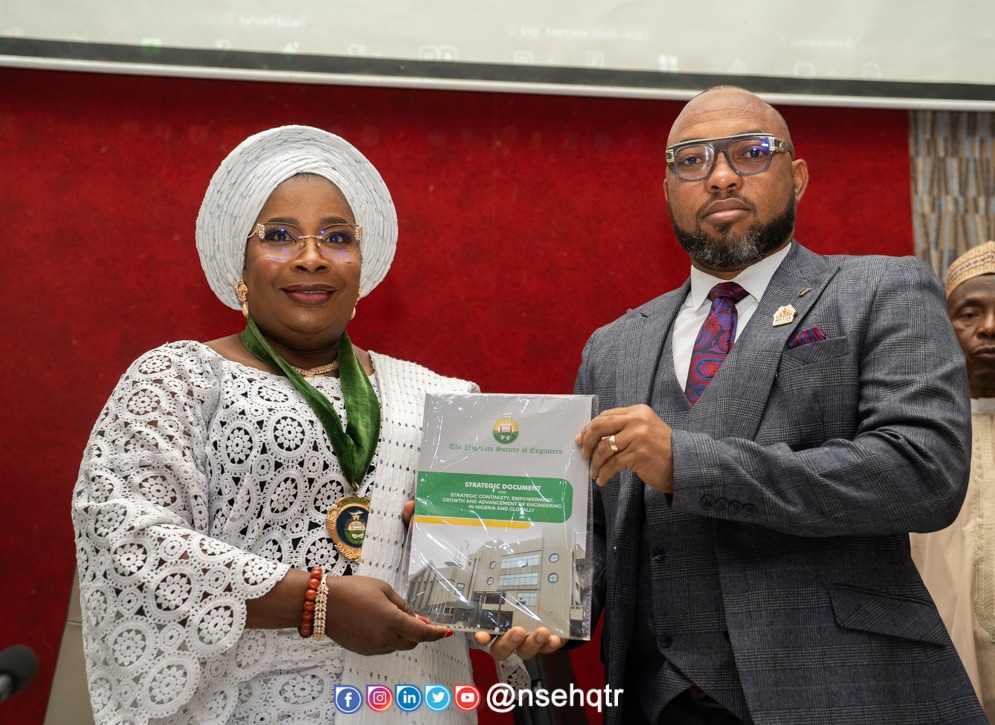 Engr. Prof Akaninyene Ekong, the Chairman, NSE Strategic Document Committee, has presented the committee’s final report to the NSE President, Engr Margaret Oguntala FNSE, FNISafetyE.